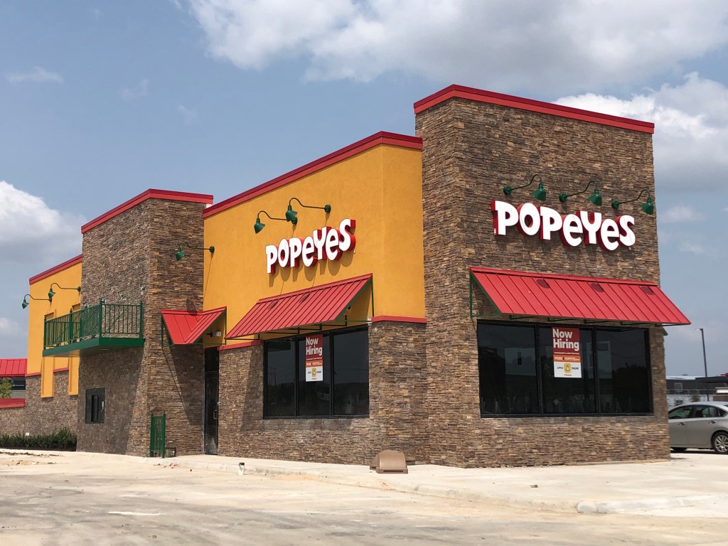 A brand new Popeyes Louisiana Kitchen location is nearly complete in Leander on Crystal Falls Parkway near the 183A intersection. Construction workers are putting the finishing touches on the building and “now hiring” signs are in the windows.
